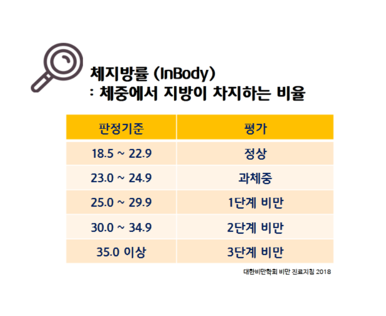 나의 체질량지수(BMI), 또는 체지방율을 측정하여 비만도를 확인해보세요~