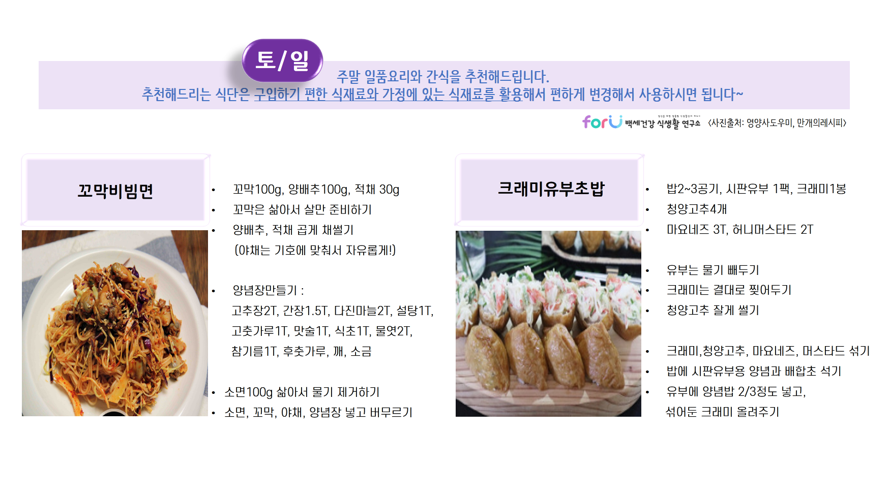 날씨도 추운데 매일매일 반찬이 고민되시나요? 그 고민을 저희 'forU 백세건강 식생활 연구소'가 함께 하겠습니다.