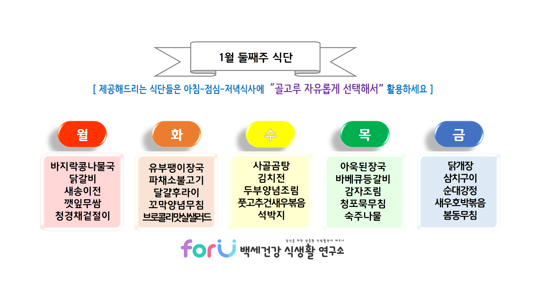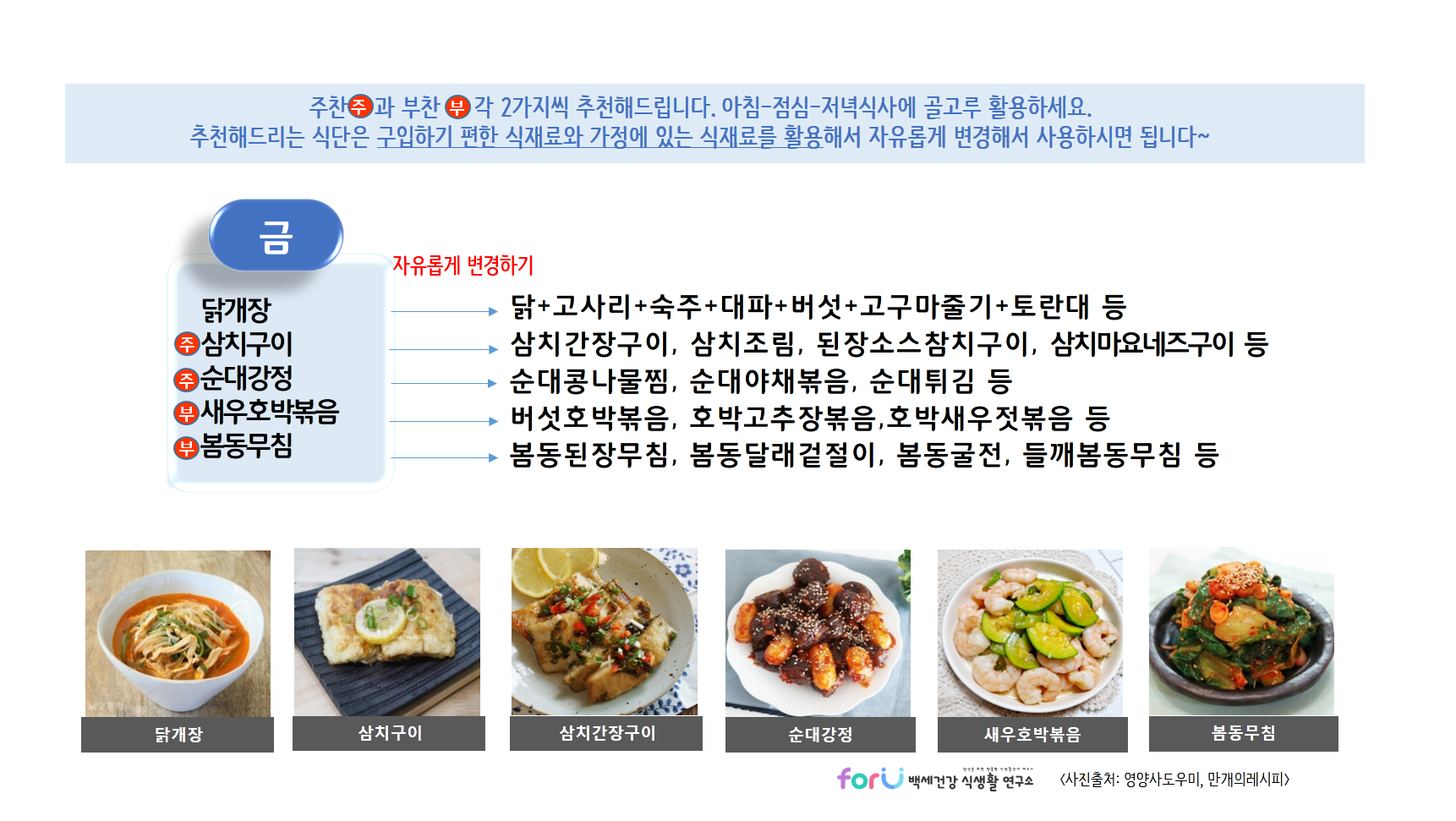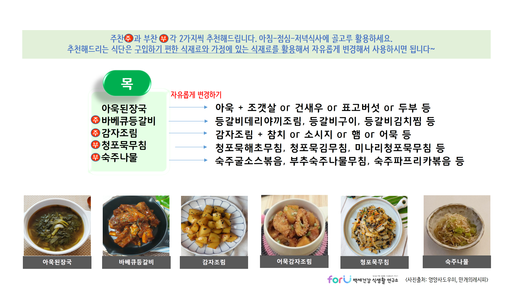 날씨도 추운데 매일매일 반찬이 고민되시나요? 그 고민을 저희 'forU 백세건강 식생활 연구소'가 함께 하겠습니다.