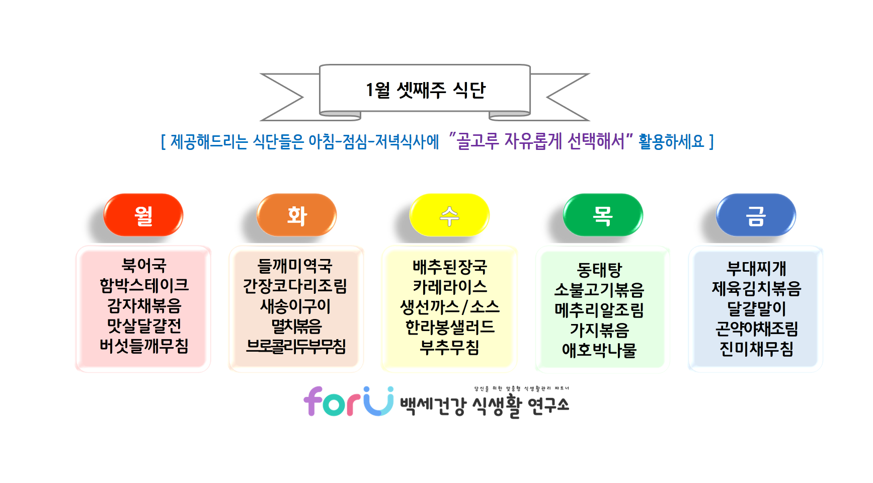 이번주도 'forU 백세건강 식생활 연구소'가 함께 하겠습니다. 감사합니다! 화이팅!!