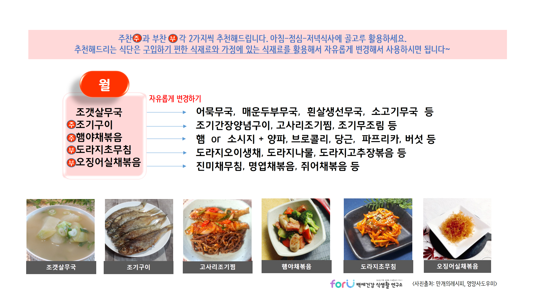 오늘도 반찬걱정에 스트레스받으시나요? 저희 'forU 백세건강식생활연구소'가 늘~ 함께~ 고민하겠습니다!