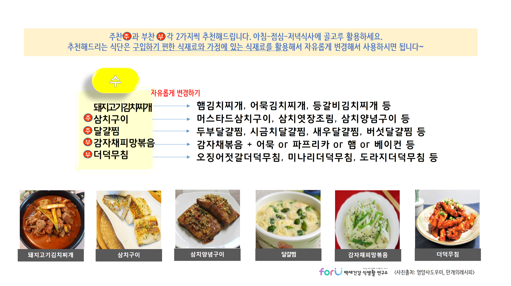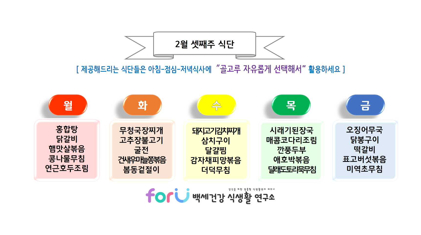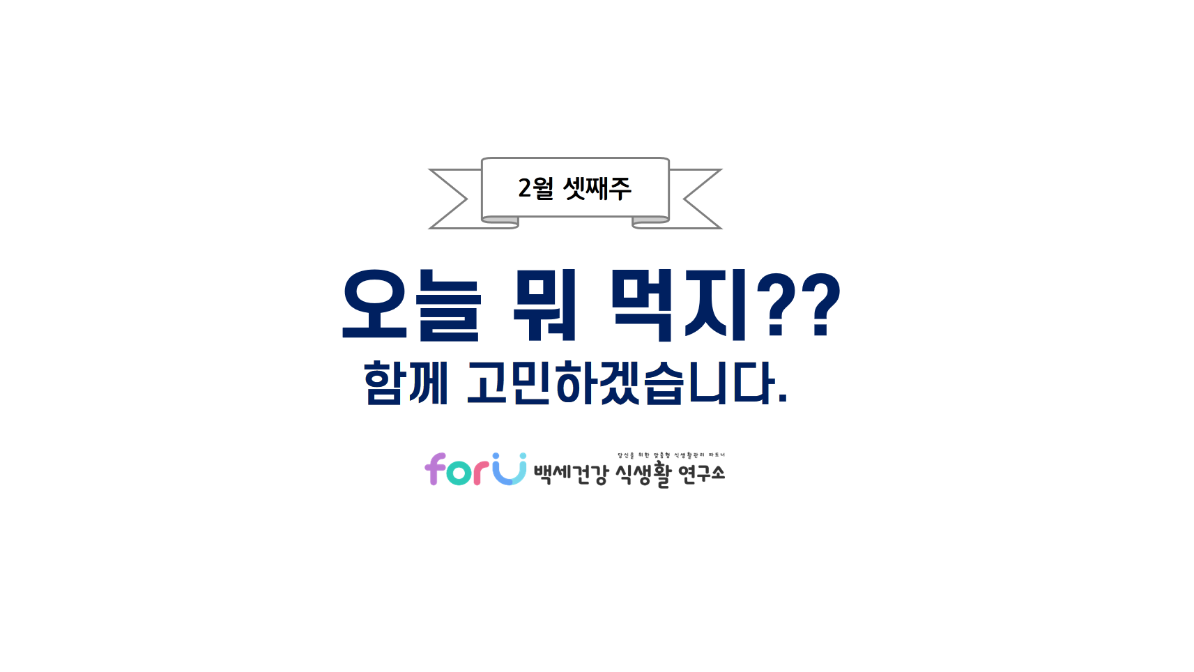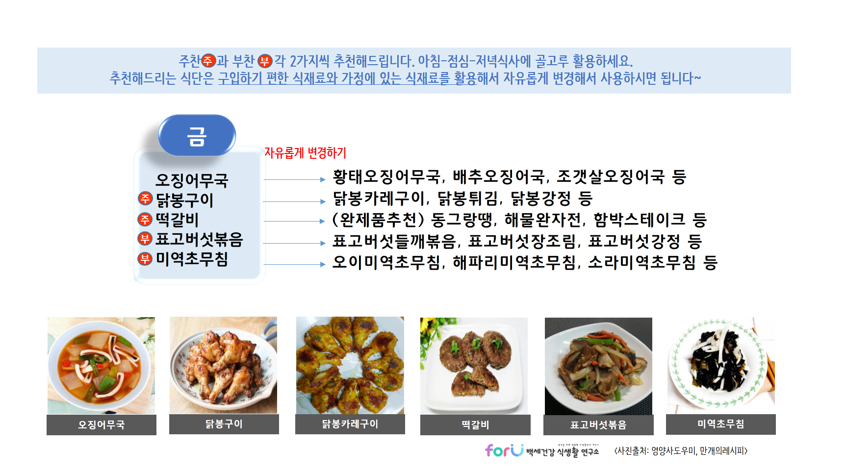 이번주 반찬고민도 저희 'forU 백세건강 식생활 연구소'와 함께 하시고,