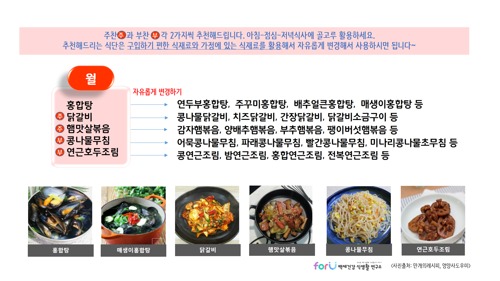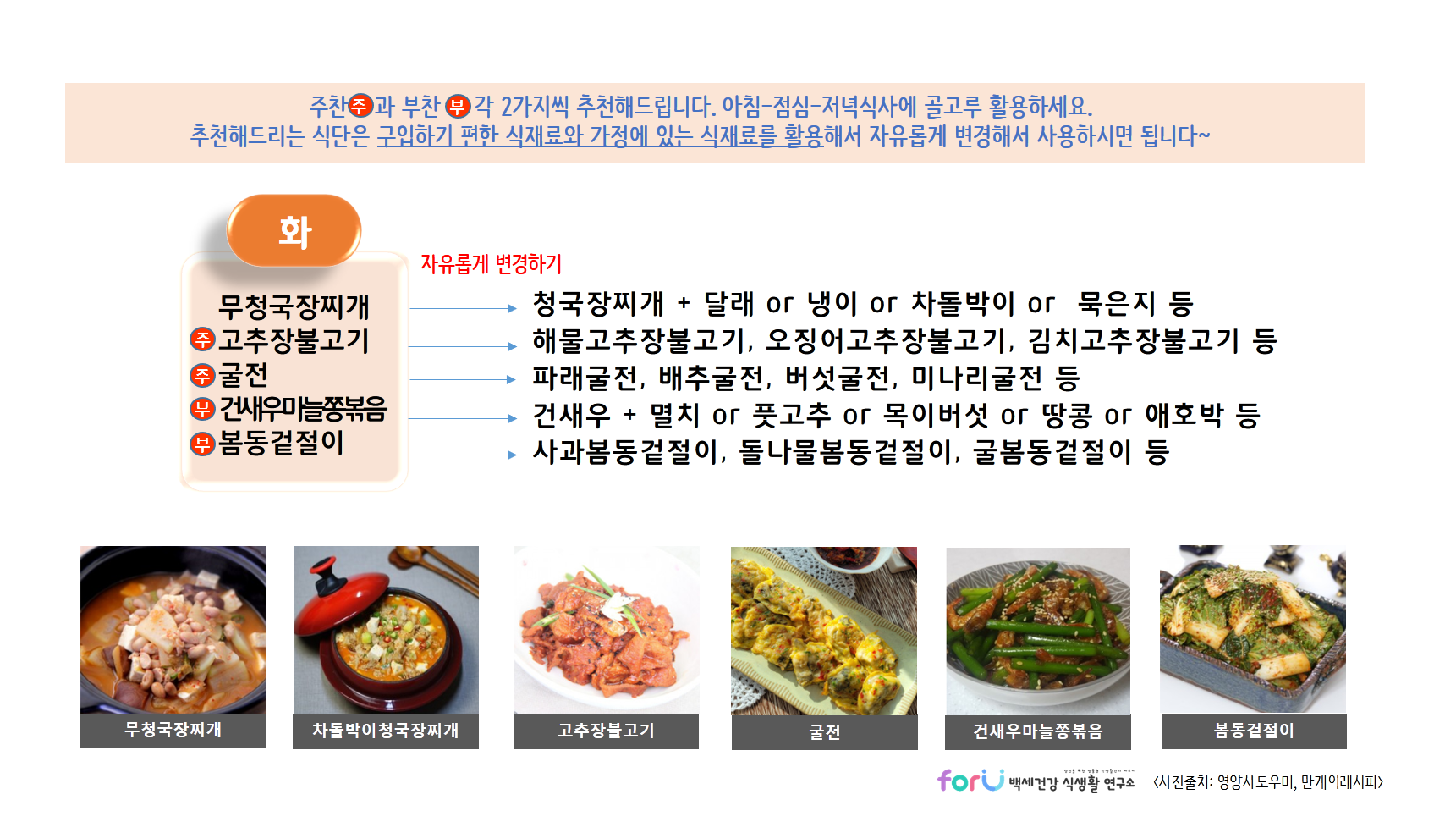 이번주 반찬고민도 저희 'forU 백세건강 식생활 연구소'와 함께 하시고,