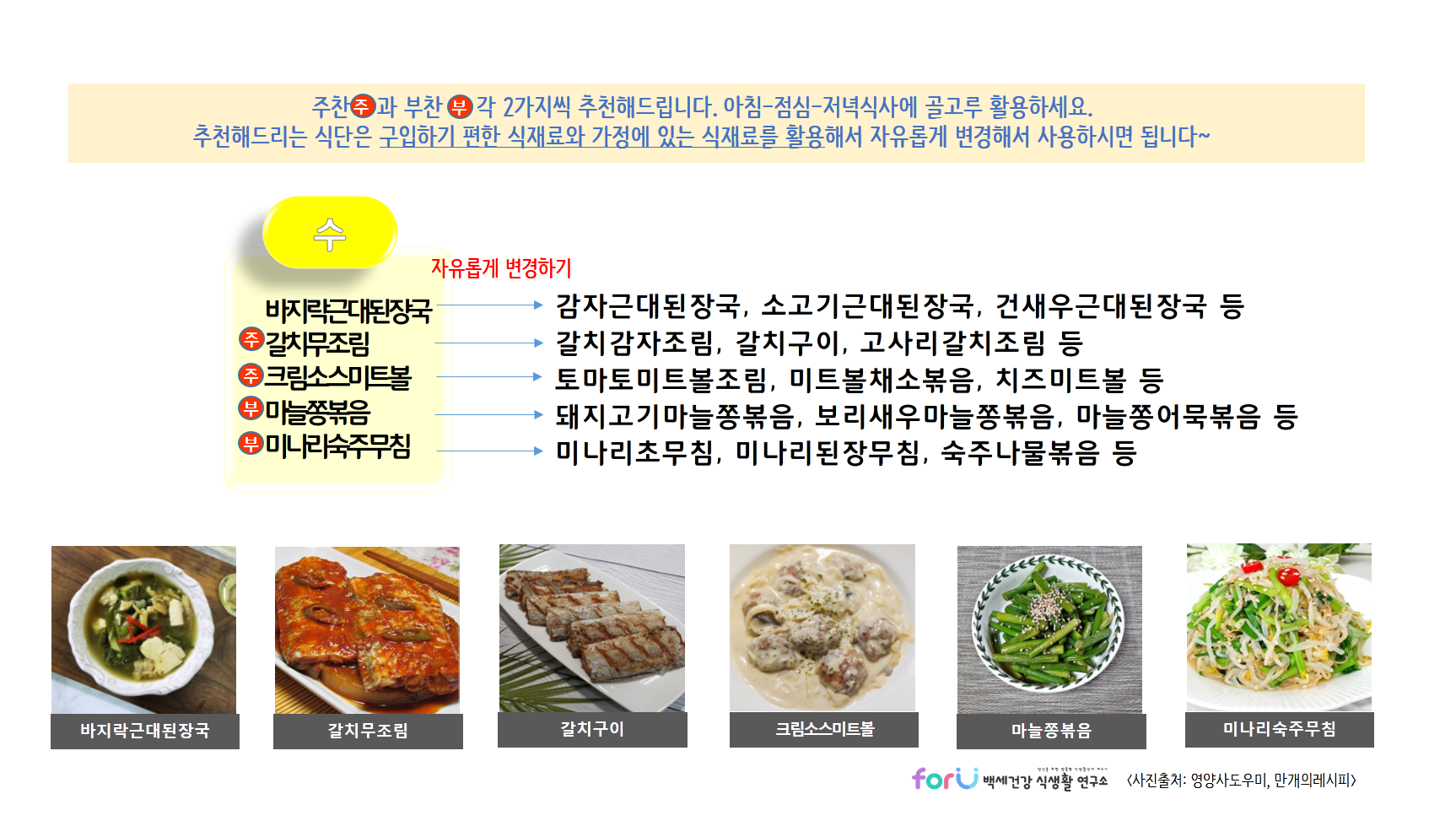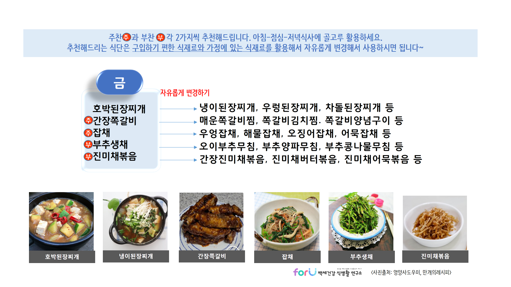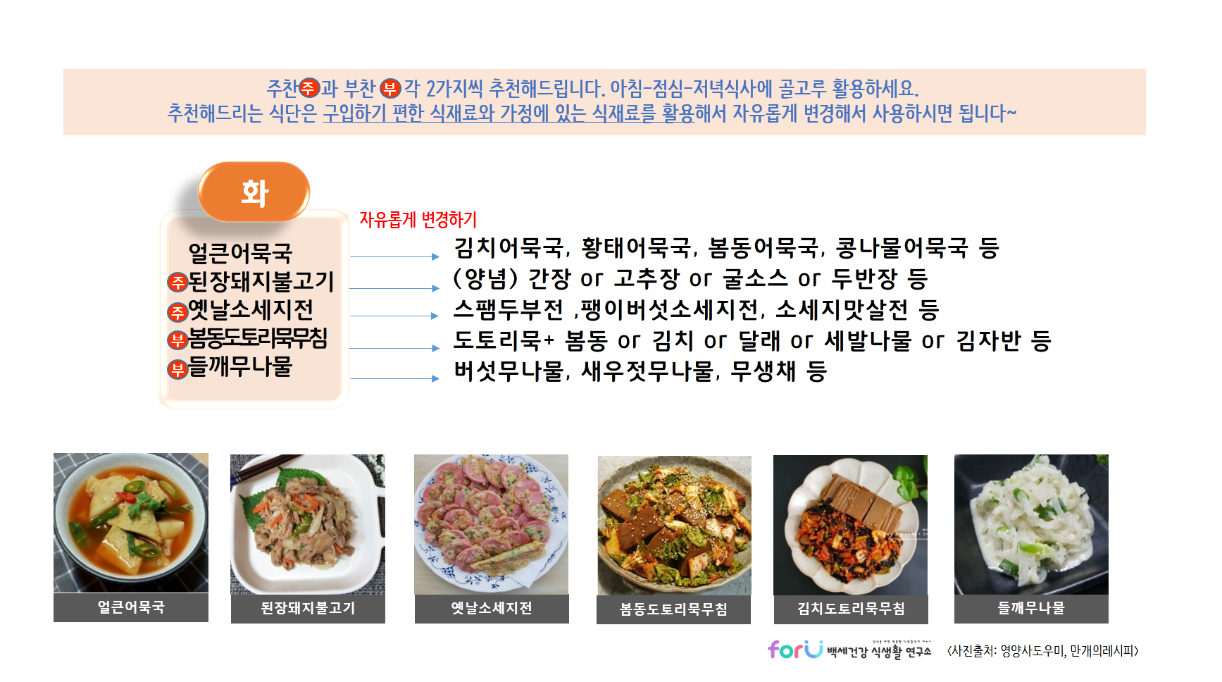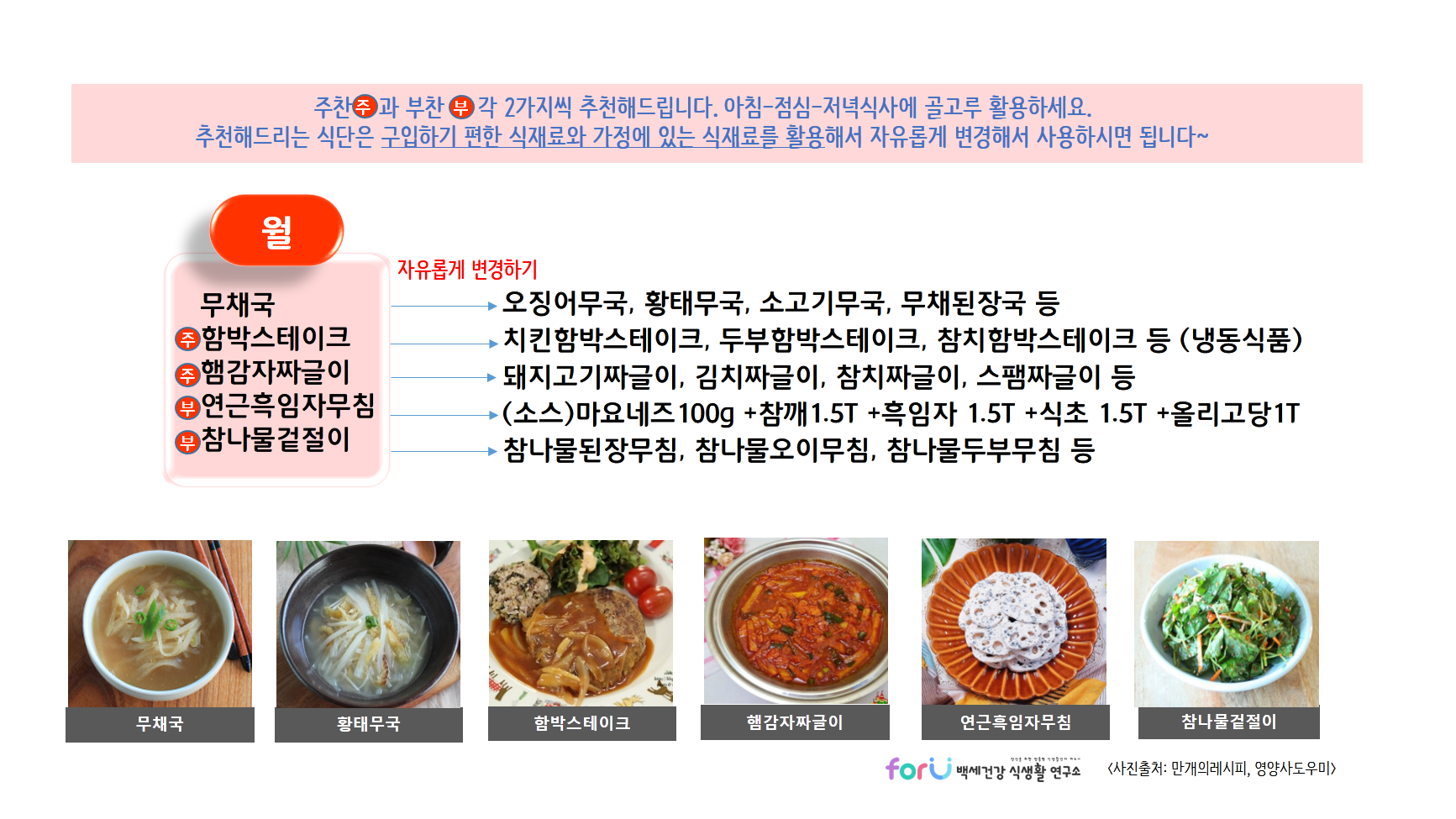 이번주도 건강한 집밥 먹으면서 화이팅하세요~ 'forU 백세건강 식생활 연구소'가 함께 하겠습니다.