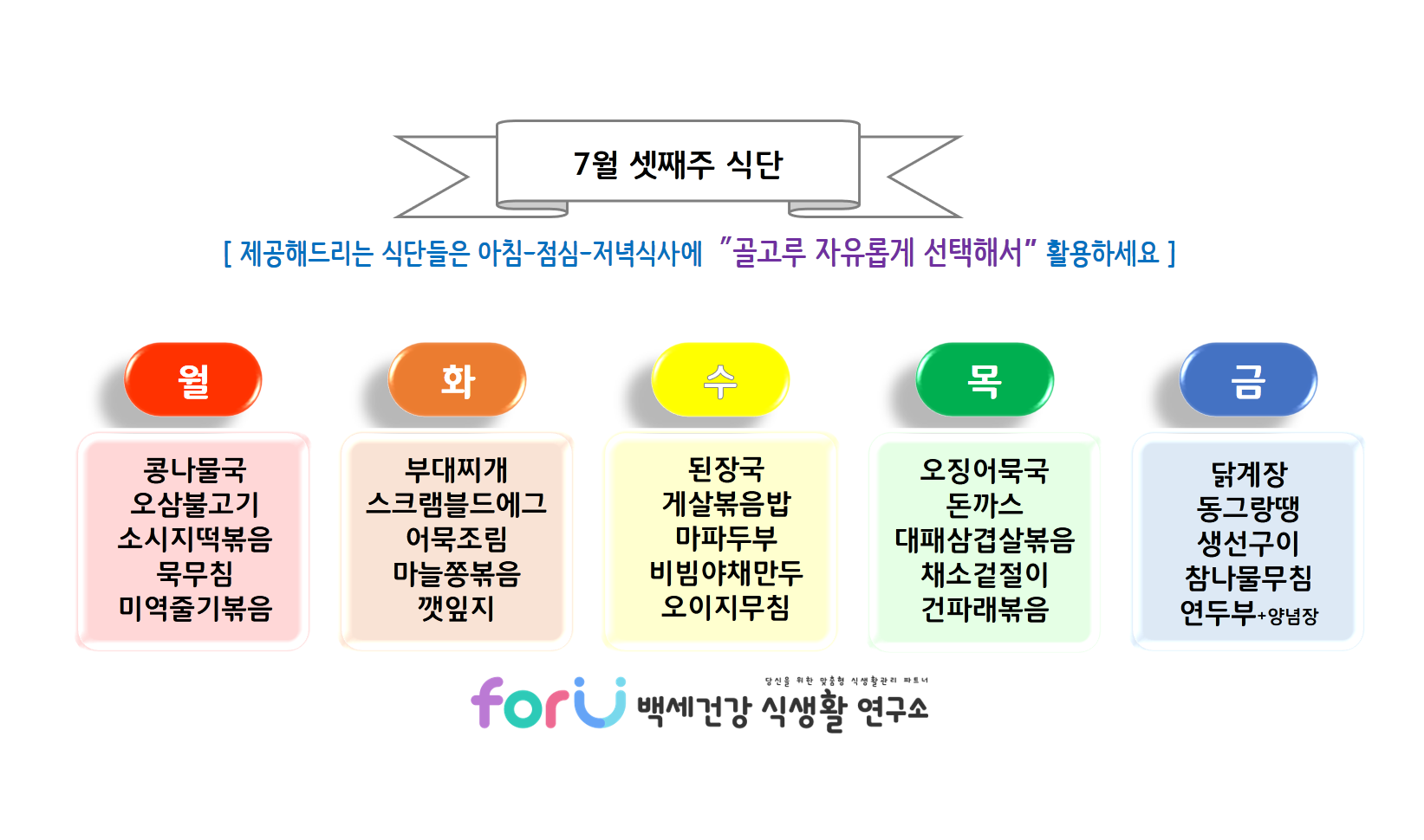 ★ 사진을 옆으로 넘기면 요일별로 더 자세한 응용식단들이 보입니다~ 참고하세요~^^