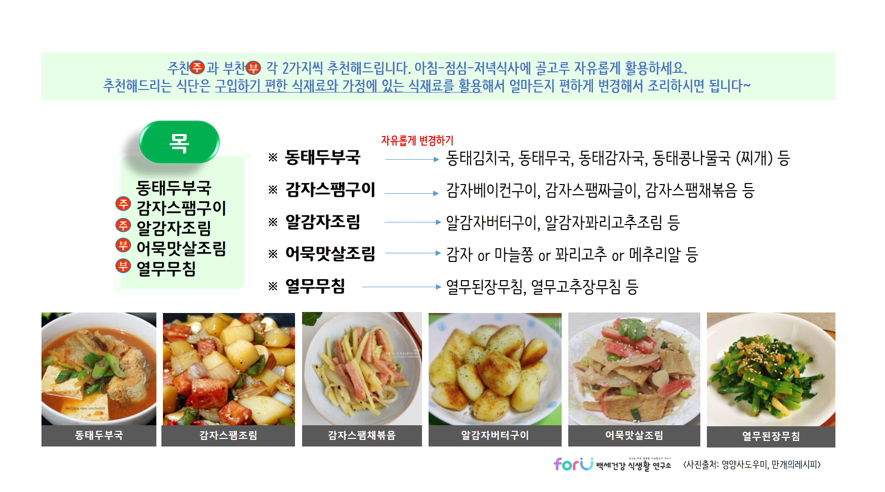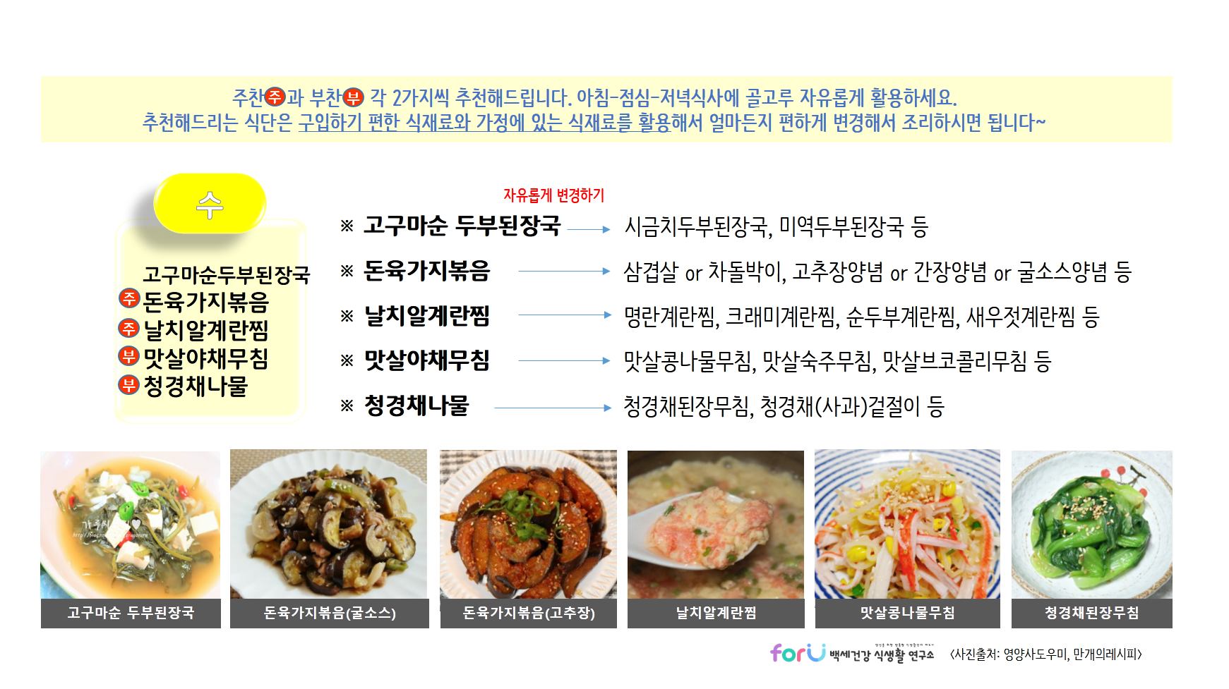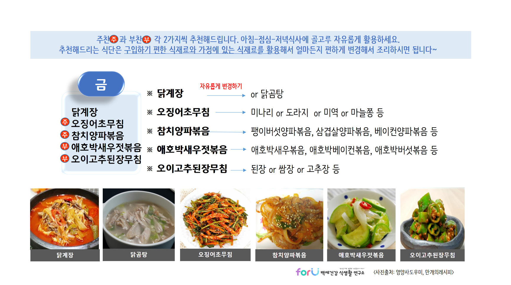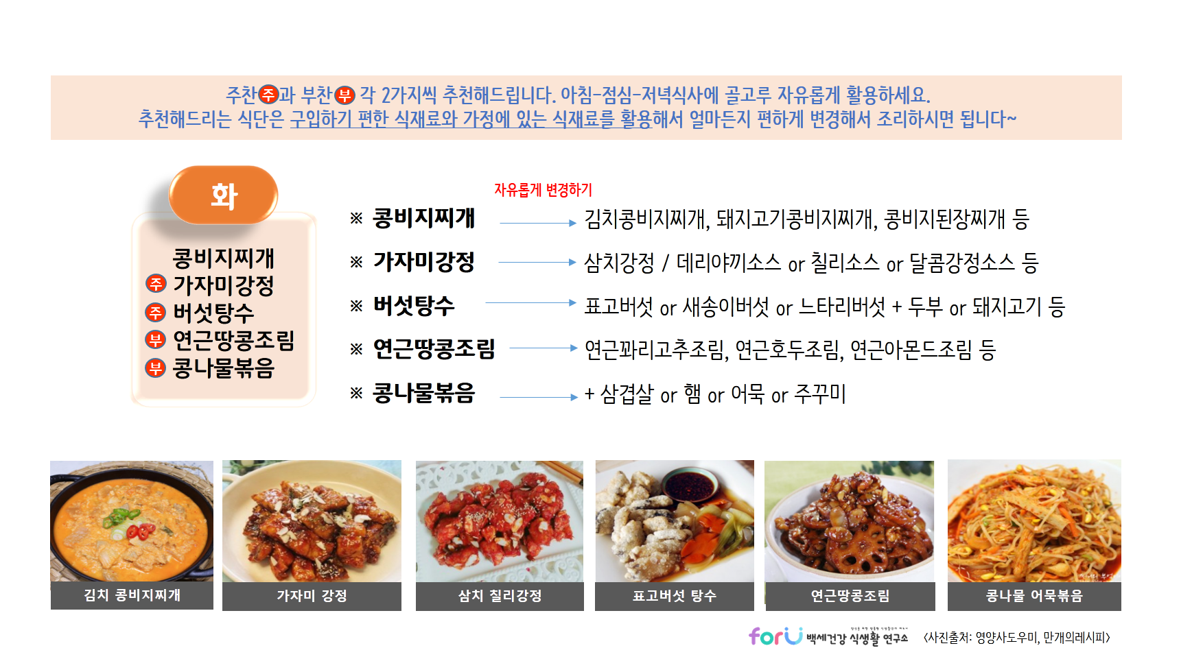 저희 'forU 백세건강 식생활 연구소'는 여러분의 건강식단을 언제나 응원합니다.