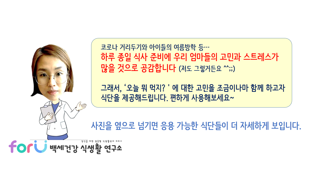 8월의 시작도 저희 'for U 백세건강 식생활 연구소'와 함께해주셔서 감사합니다.