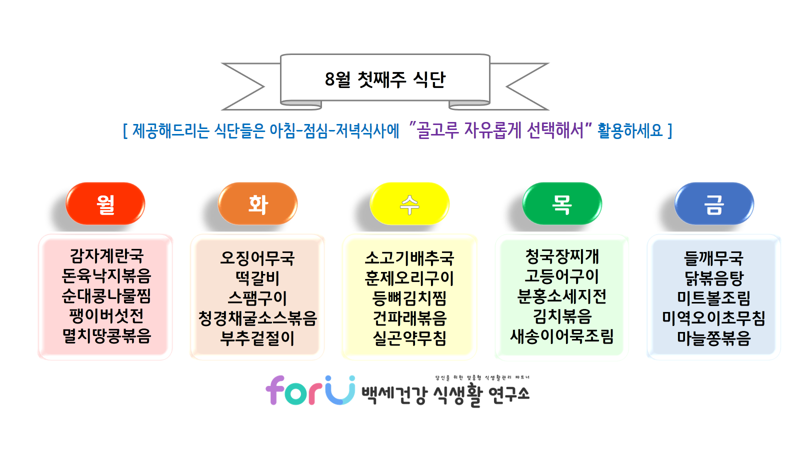 8월의 시작도 저희 'for U 백세건강 식생활 연구소'와 함께해주셔서 감사합니다.
