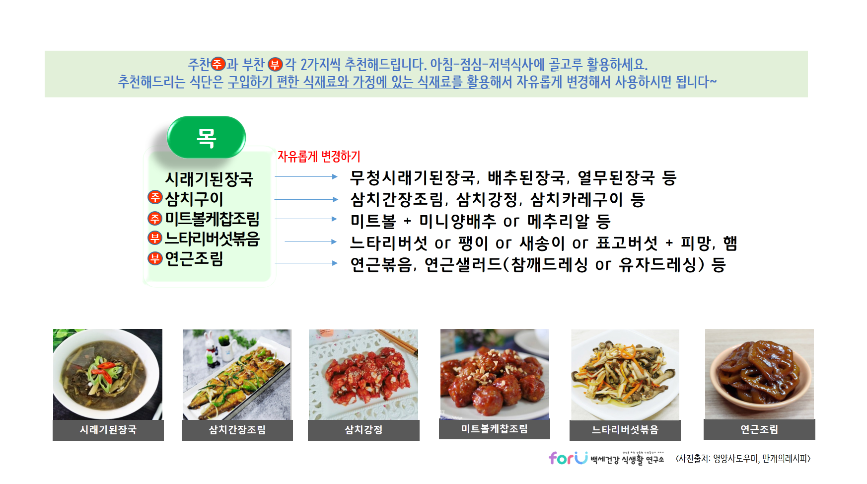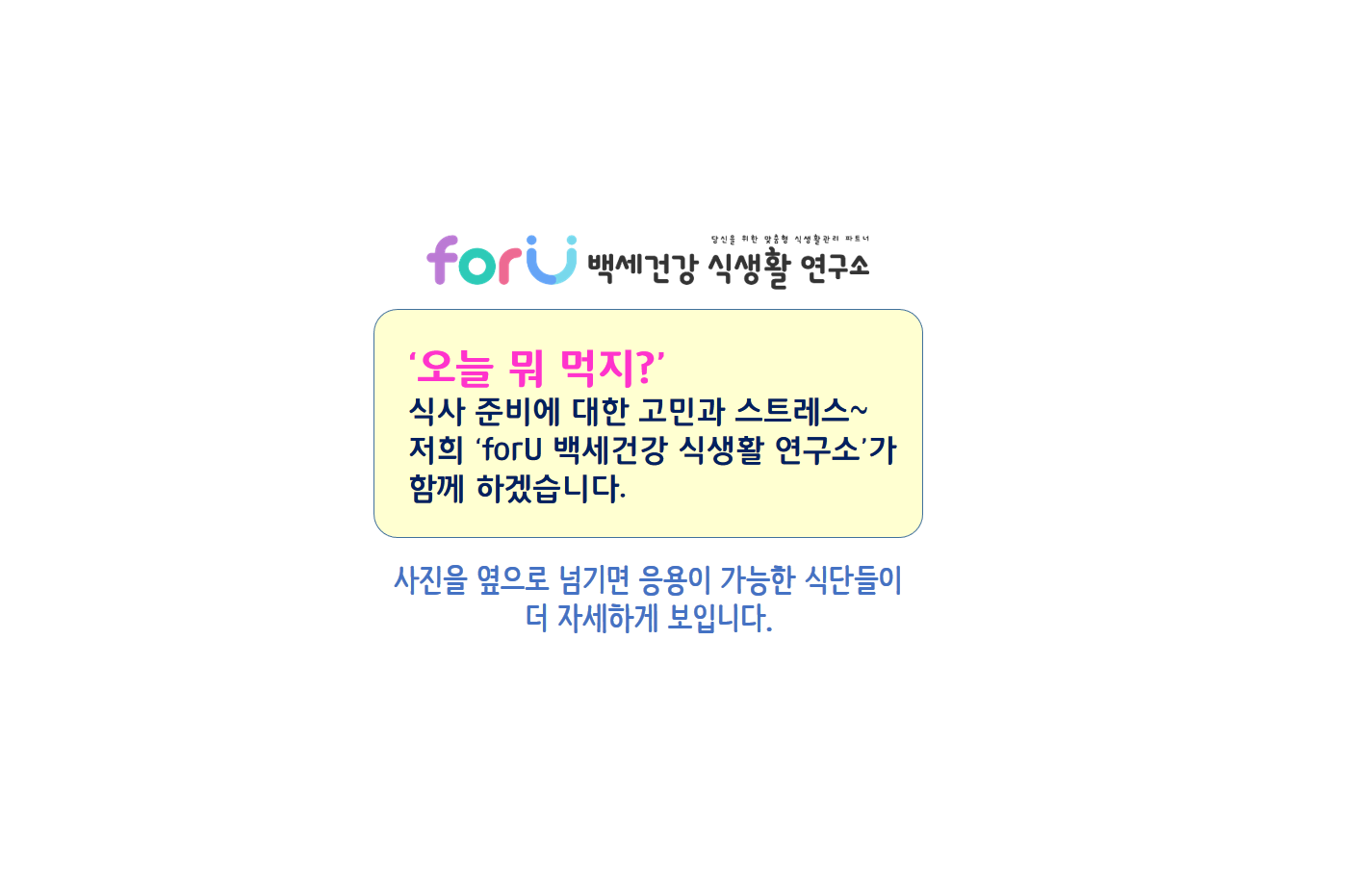 저희 'forU 백세건강 식생활 연구소'는 한결같이 함께하겠습니다.