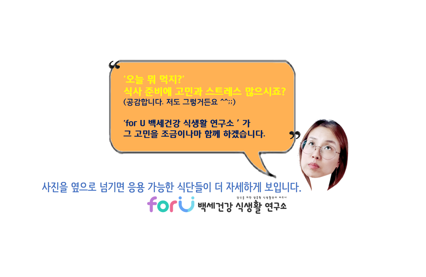 저희 'forU 백세건강 식생활 연구소'와 함께 힘내세요~ 화이팅!
