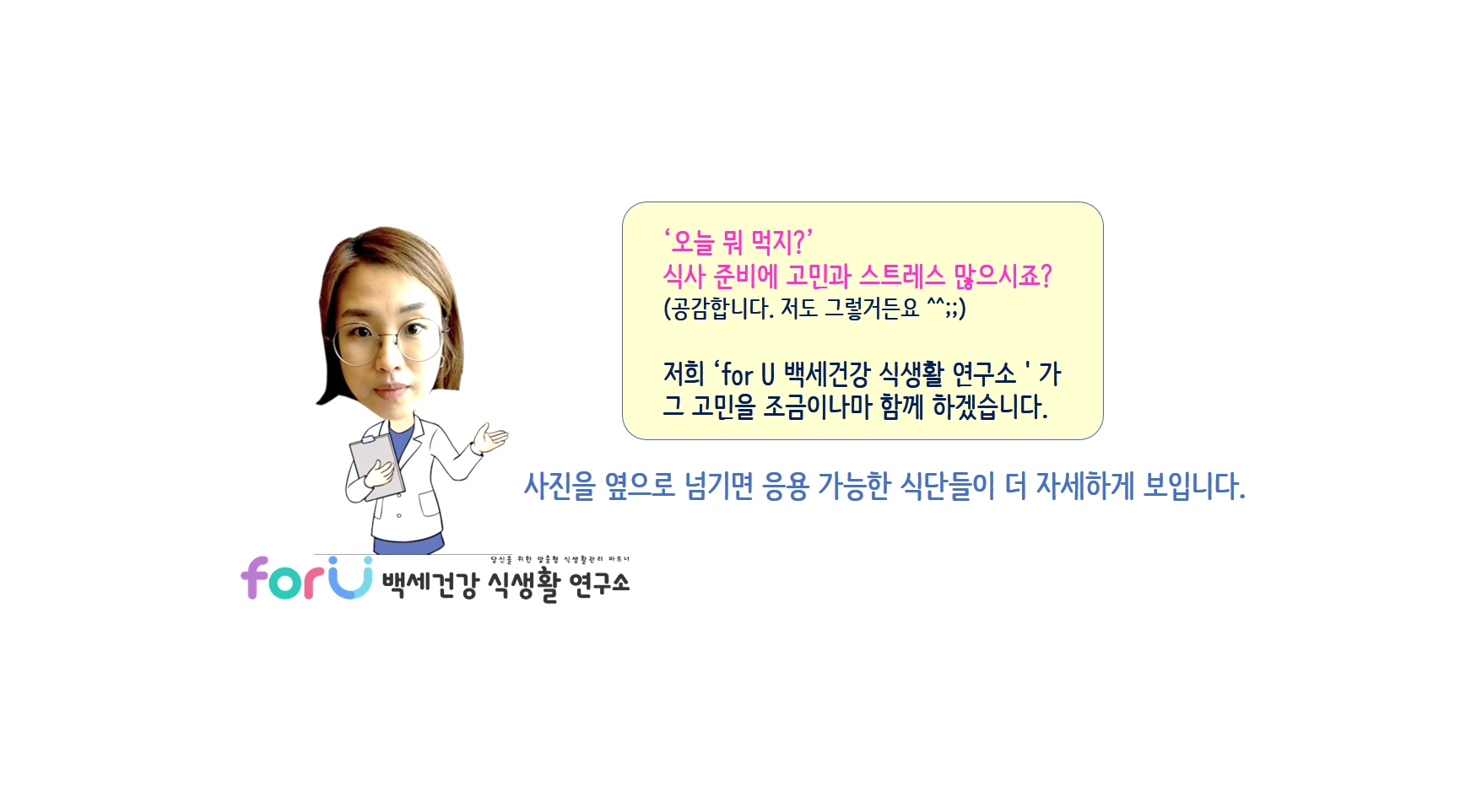 저희 'forU 백세건강 식생활 연구소'와 함께 힘내세요~ 화이팅!