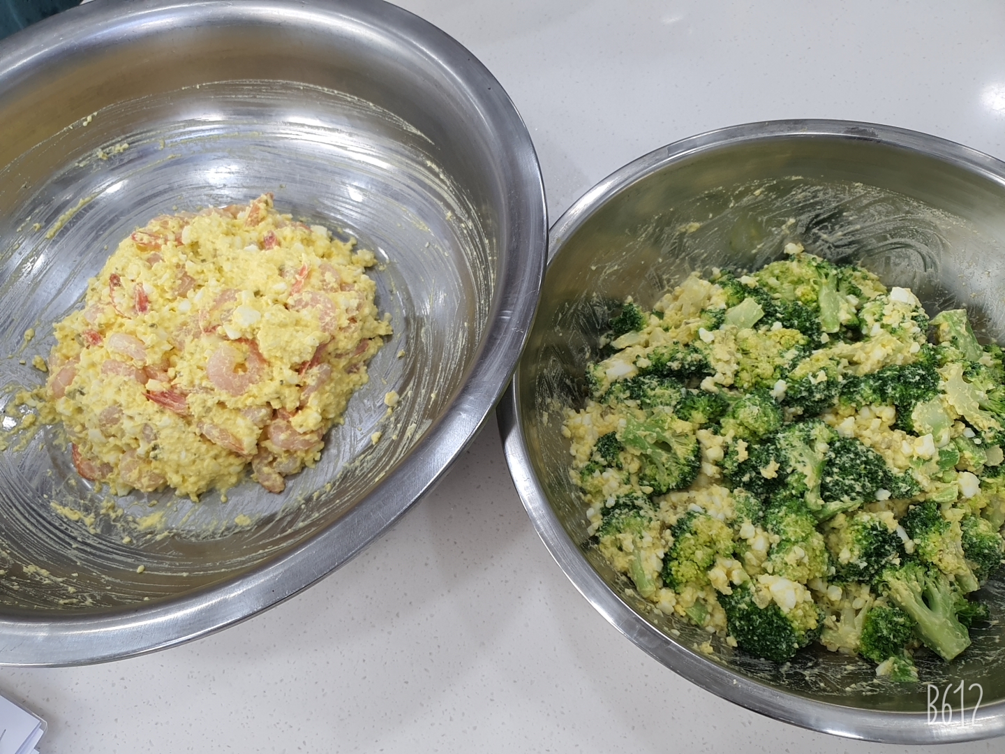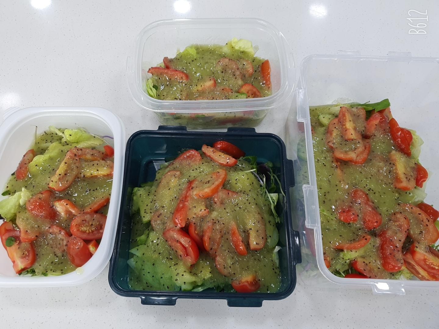 오늘의 샐러드는 "브로콜리새우샐러드" 와 "키위드레싱샐러드"