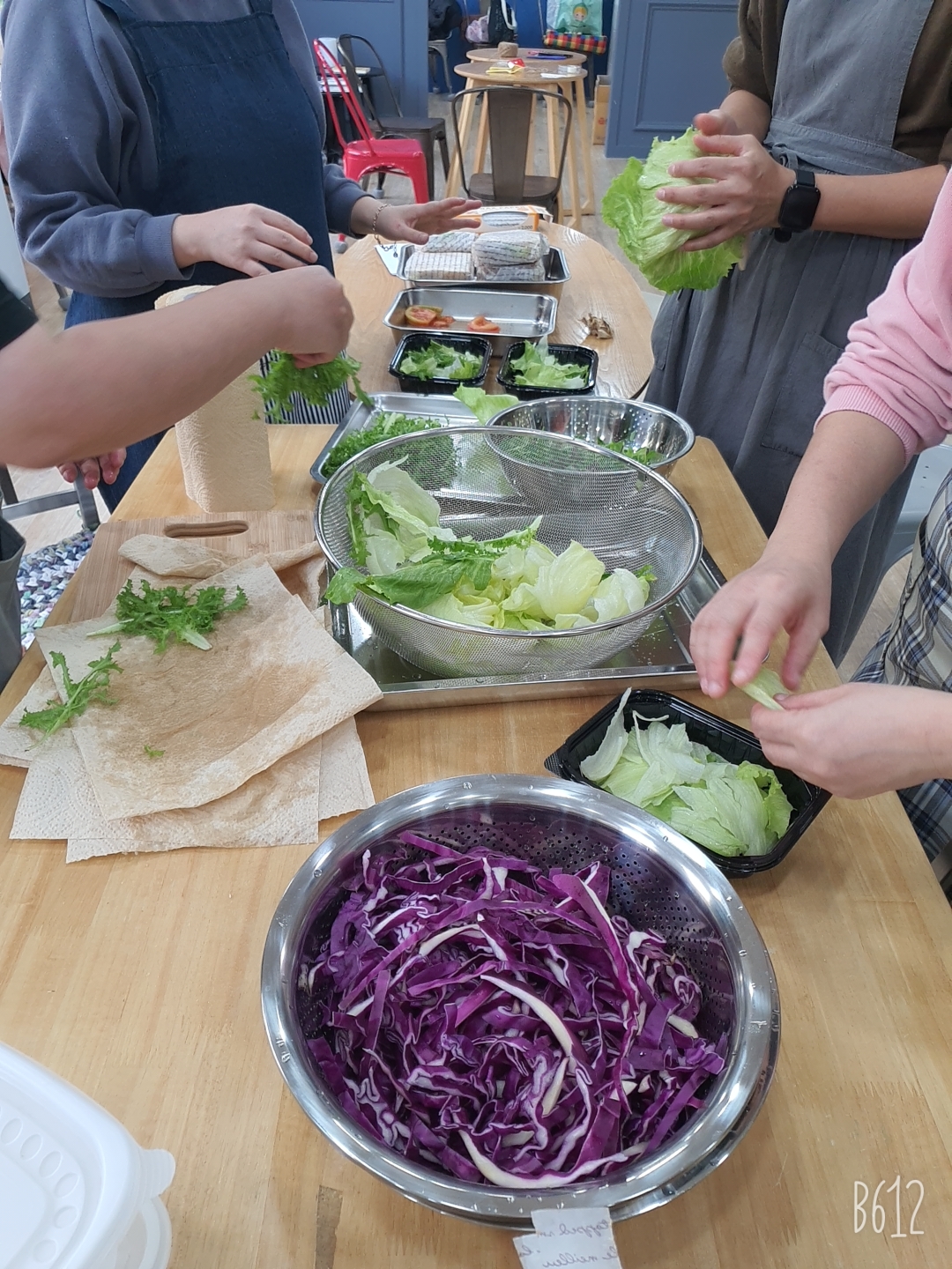 매주 월요일에 모여서 샐러드를 함께 만드는데요. (코로나 사회적 거리두기에 따른 지침 준수)