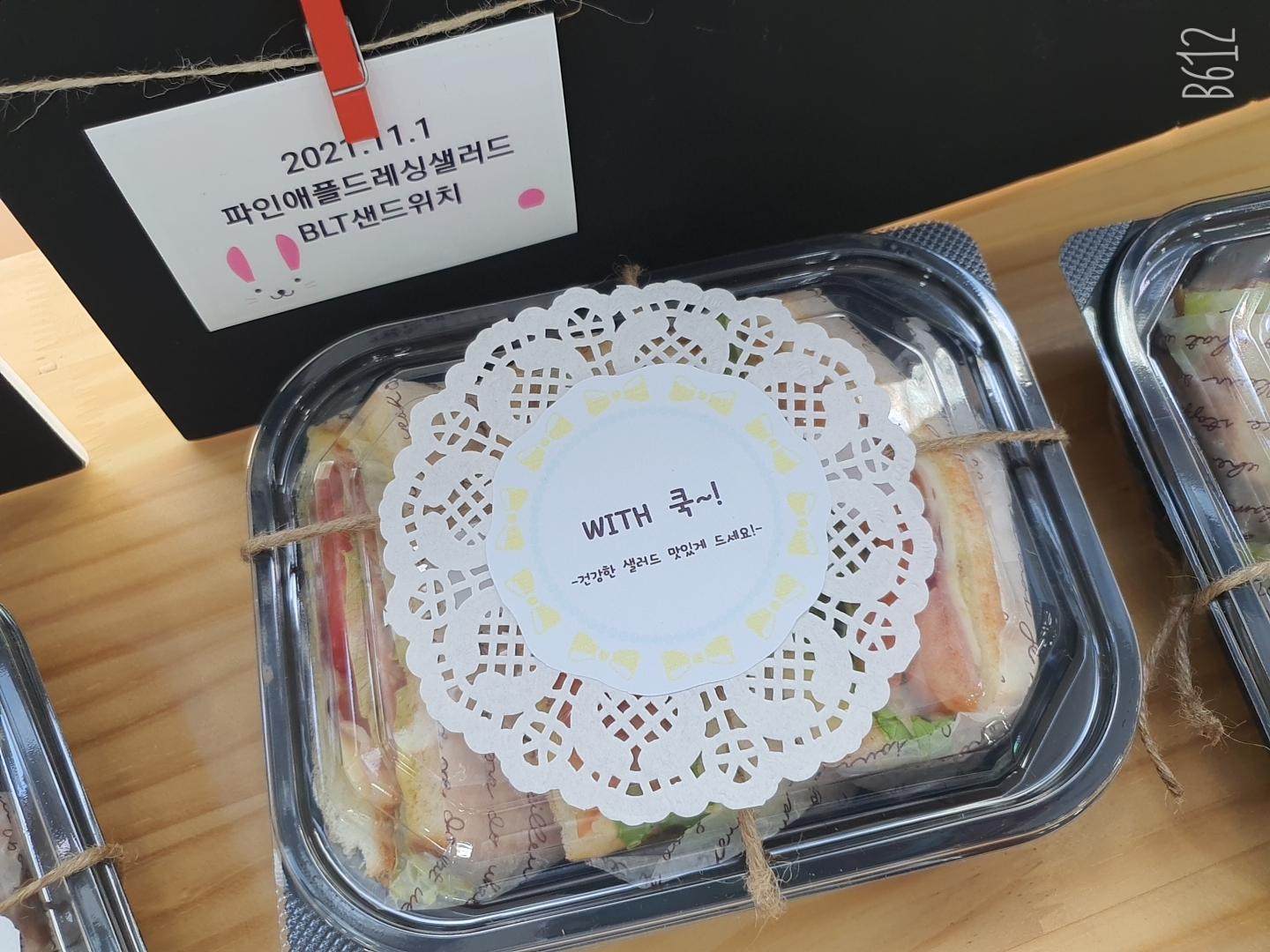 오늘의 샐러드는 "파인애플드레싱샐러드" 와 "BLT 샌드위치"