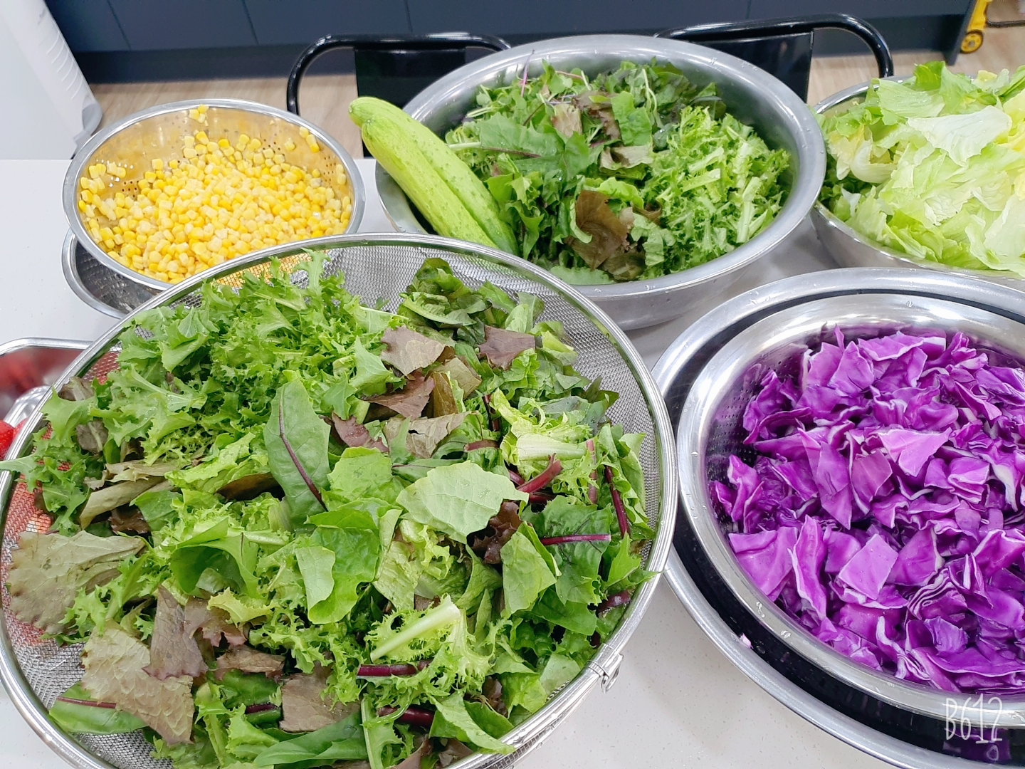 매주 월요일에 모여서 샐러드를 함께 만드는데요. (코로나 사회적 거리두기에 따른 지침 준수)
